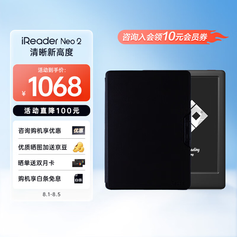 掌阅iReader Neo2 6英寸 电子书阅读器 墨水屏电纸书 平板学习笔记本 轻量便携 32GB 沉墨 典雅黑·套装价格:1068.00元!