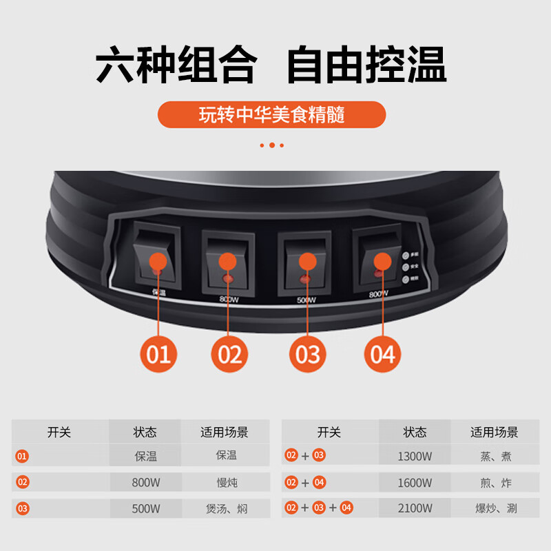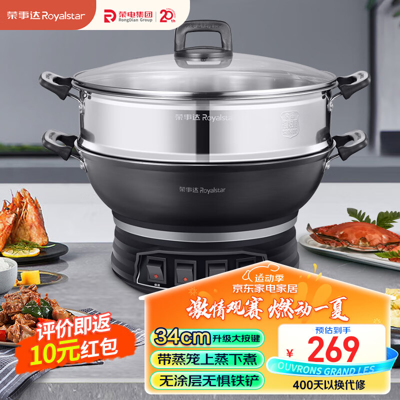 荣事达(Royalstar)电炒锅电蒸锅电煮锅山东锅家用铸铁炖蒸煮不粘锅一体多功能蒸笼蒸包子电火锅大容量RDQJ3-34单笼价格:269.00元!