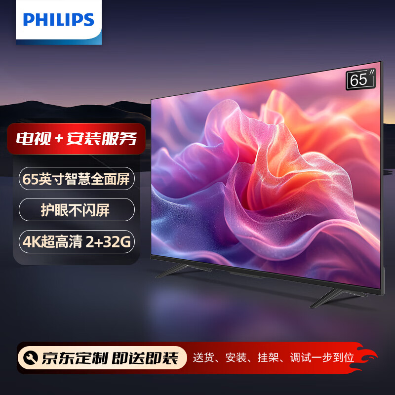 飞利浦(PHILIPS)7099系列65英寸电视【送装一体版】4K智慧屏 远场AI语音智能液晶平板电视机 65PUF7099/T3价格:2868.00元!