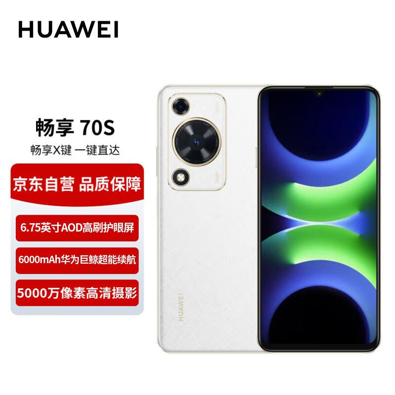华为畅享 70S 6.75英寸AOD护眼大屏 畅享X键常用功能一步直达8GB+256GB雪域白 鸿蒙智能手机价格:1259.00元!