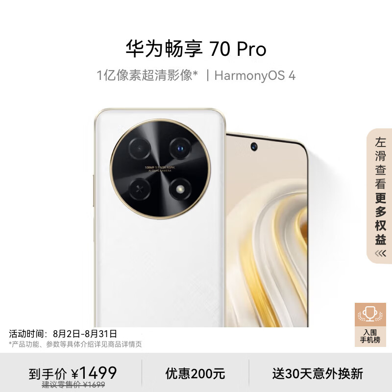 华为畅享 70 Pro 1亿像素超清影像40W超级快充5000mAh大电池长续航 256GB 雪域白 鸿蒙智能手机价格:1499.00元!