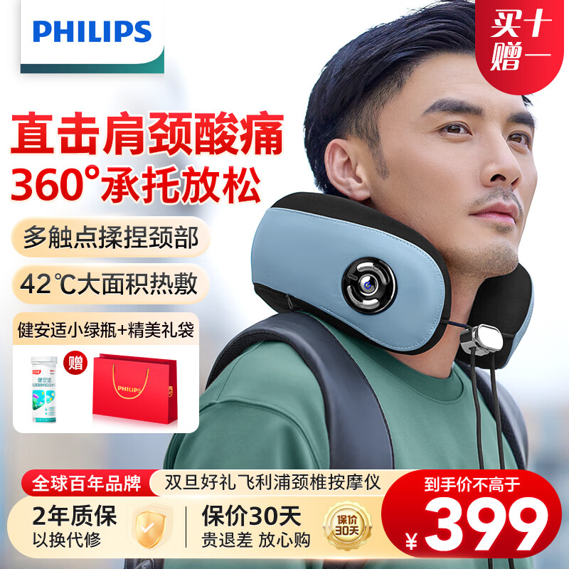 飞利浦(PHILIPS)颈椎按摩器 肩颈按摩仪物理揉捏热敷按摩枕支撑颈托 圣诞礼物生日礼物 3104N价格:449.00元!