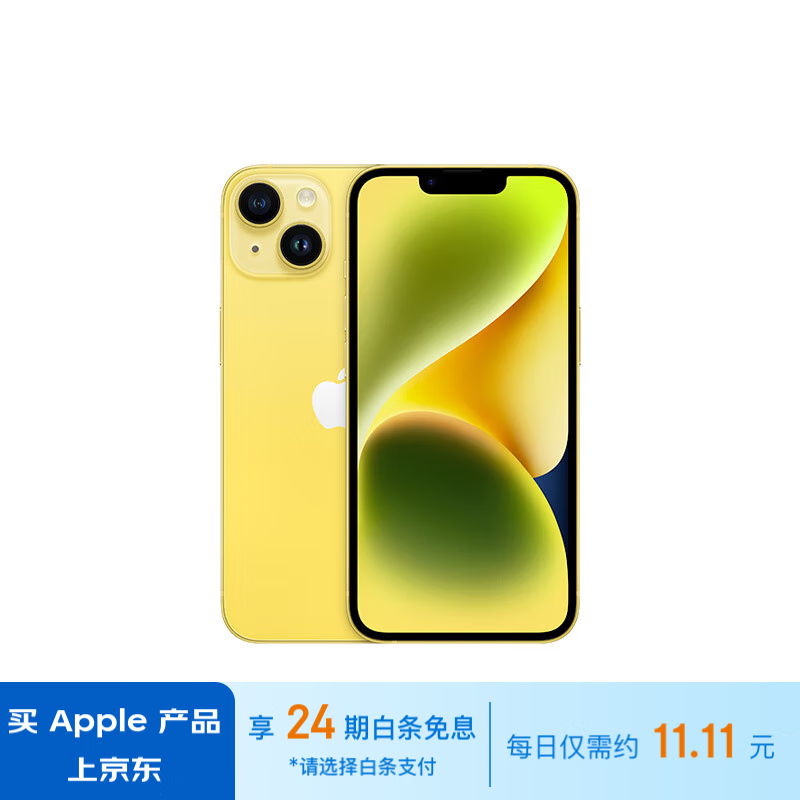 Apple/苹果【24期免息】iPhone 14 (A2884) 512GB 黄色 支持移动联通电信5G 双卡双待手机价格:8399.00元!
