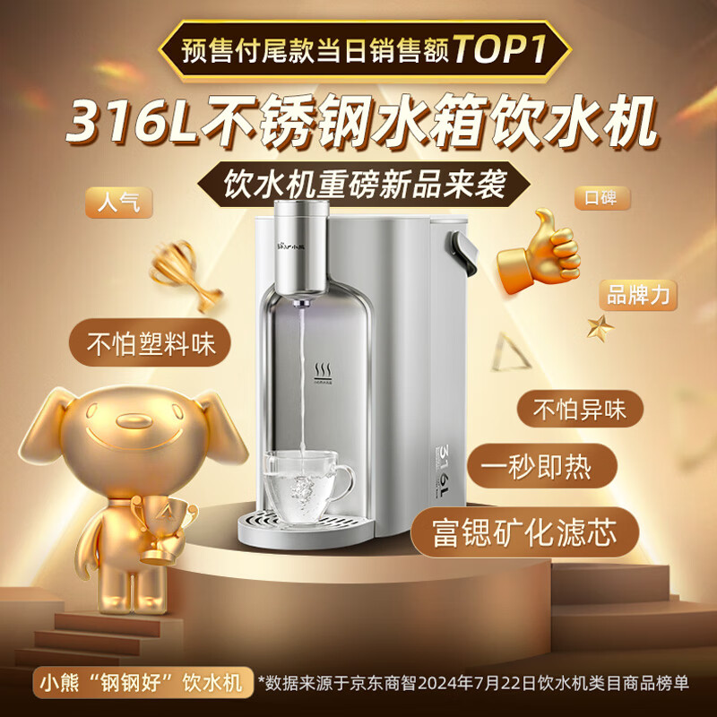 小熊(Bear)即热式饮水机直饮机家用桌面台式小型烧水一体机速热3升免安装316不锈钢即热饮水机YSJ-E40T8价格:799.00元!