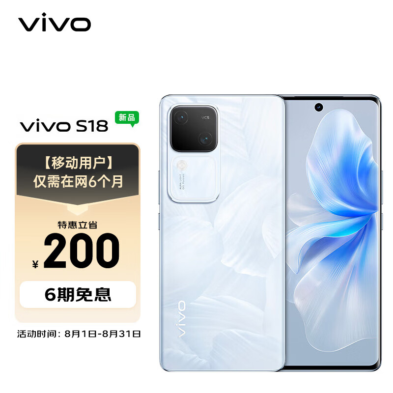 vivo S18 12GB+512GB 花似锦 后置影棚级柔光环 5000mAh电池 第三代骁龙7 【移动用户惠享】价格:2699.00元!