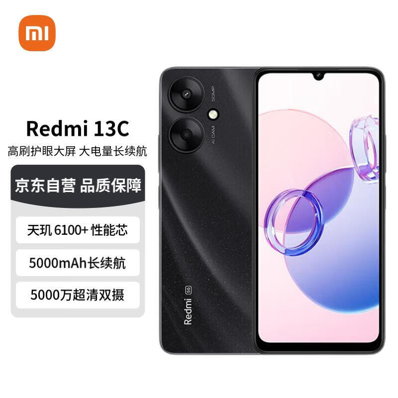 小米Redmi 13C 5G 天玑 6100+ 性能芯 5000万超清双摄 5000mAh长续航 4GB+128GB 星岩黑 智能手机价格:648.00元!