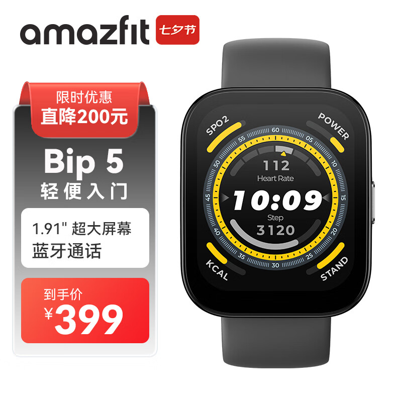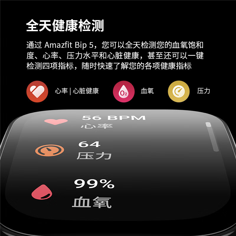 AMAZFIT华米跃我 BIP 5 午夜黑 46mm 智能手表 血氧心率 跑步骑行 户外运动 七夕情人节礼物 成人男女士表价格:399.00元!