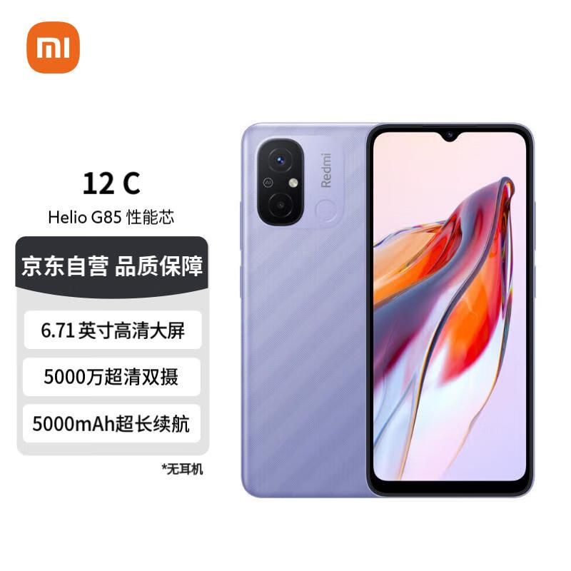 小米【6万+人加购】红米 12C Helio G85 性能芯 5000万高清双摄 4GB+64GB 熏衣紫 小米红米手机 su7价格:495.00元!
