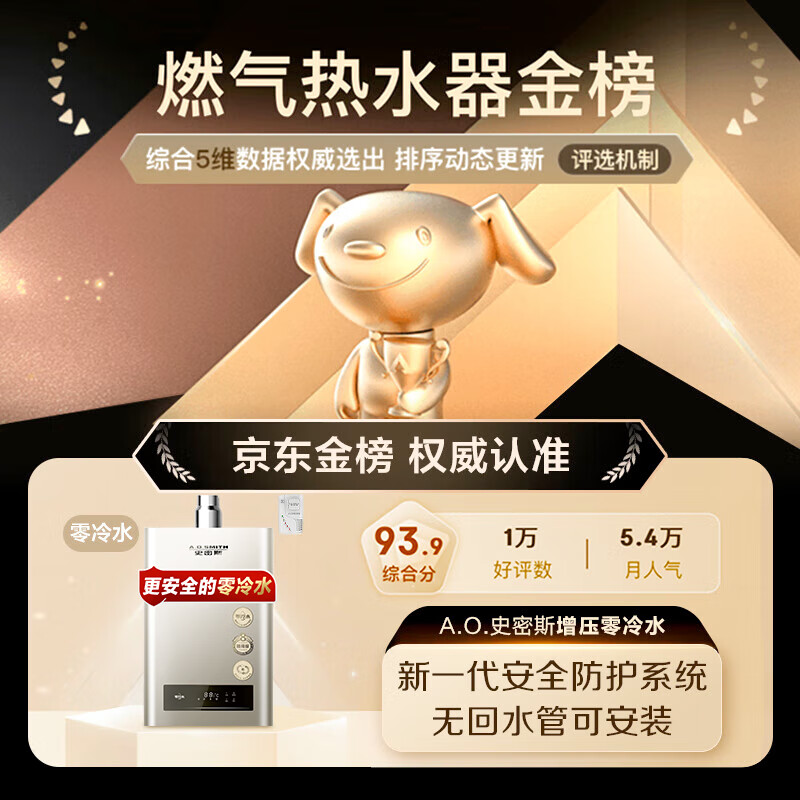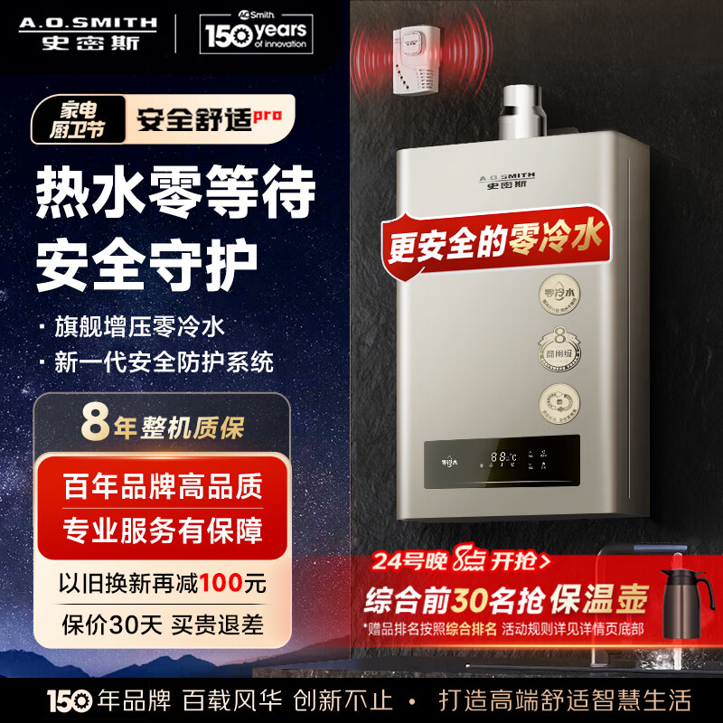 史密斯(A.O.SMITH)16升燃气热水器 增压零冷水 恒温大水量 负压更 整机包8年 JSQ31-BJS 以旧换新价格:5697.90元!