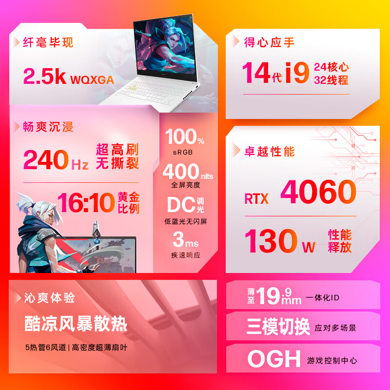 屏幕特性:高分辨率(2K以上),高刷新率(120Hz以上),高色域(100%sRGB)