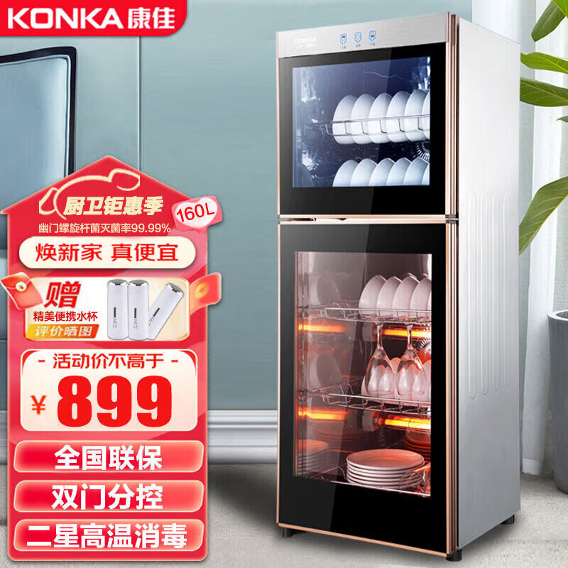 康佳(KONKA)消毒柜立式消毒碗柜商用家用臭氧高温二大容量餐具消毒柜双门分控ZTP280K7价格:899.00元!