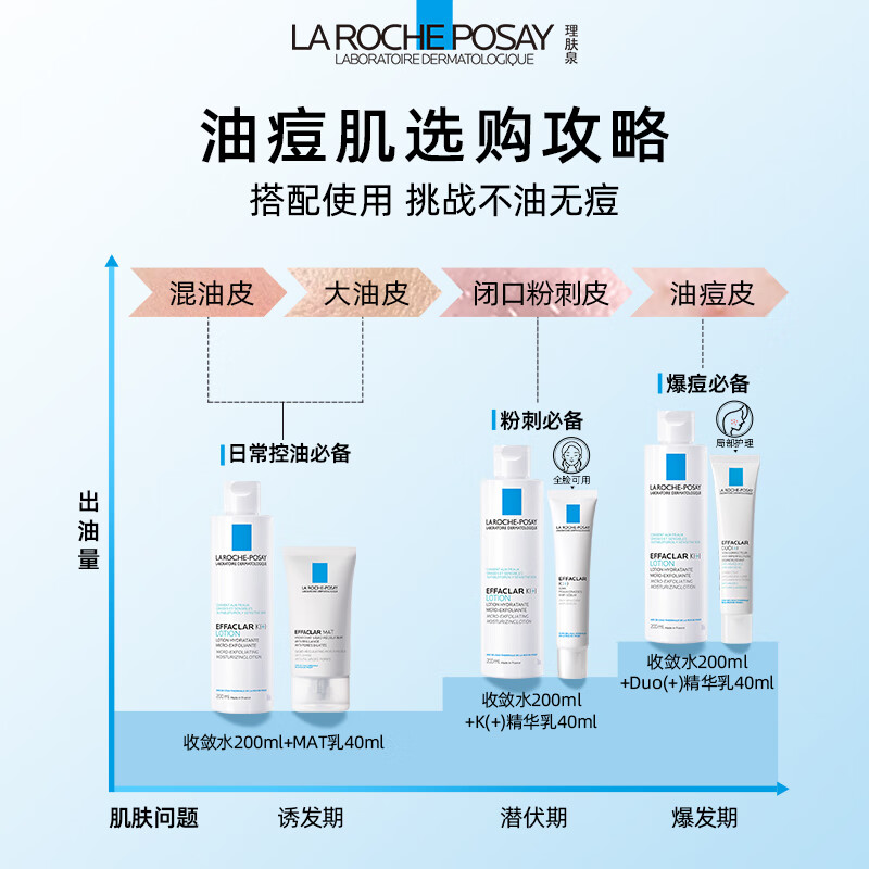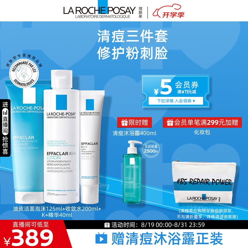理肤泉清痘水乳洁面3件套装 控油收缩毛孔油痘肌保湿补水男女面部护肤品价格:404.00元!