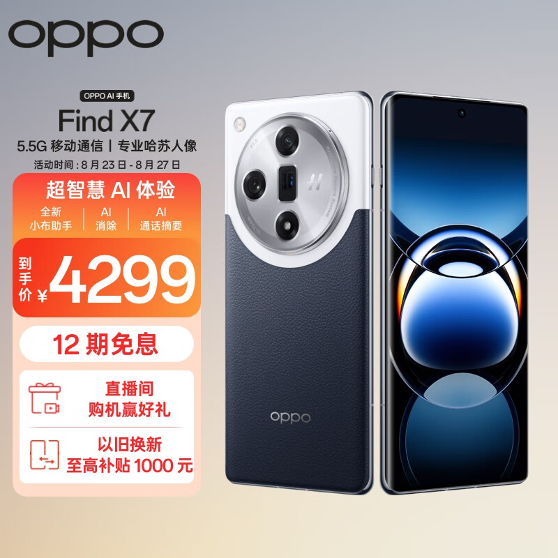 OPPO Find X7 16GB+256GB 海阔天空 天玑 9300 超光影三主摄 专业哈苏人像 长续航 5.5G 拍照 AI手机价格:4299.00元!