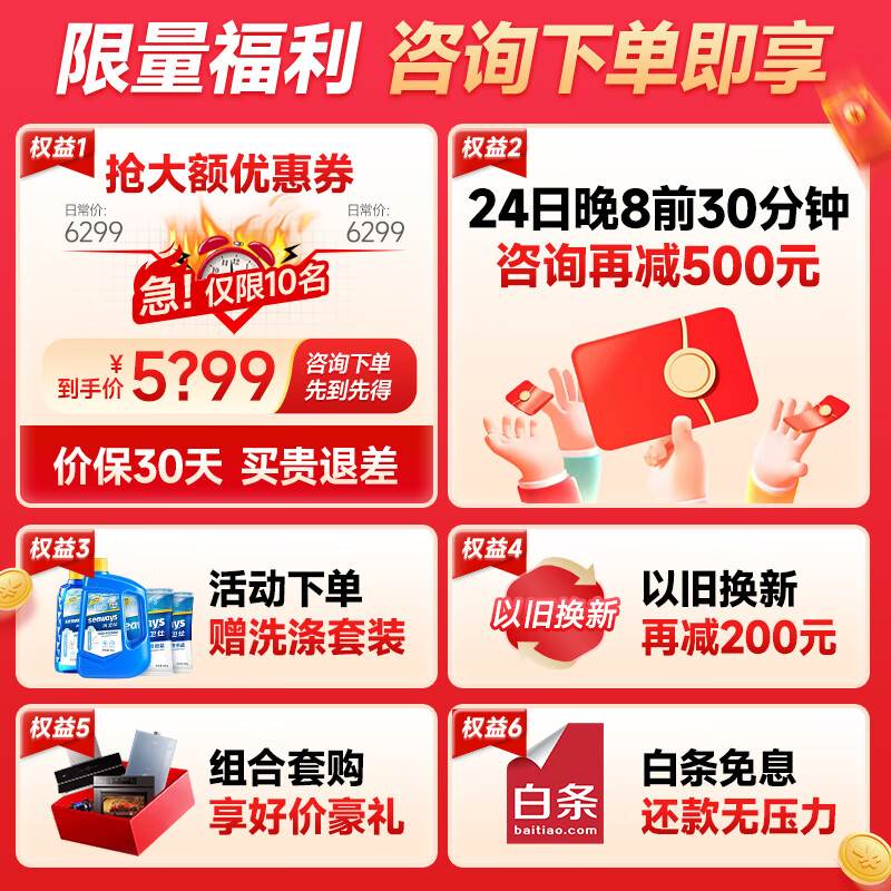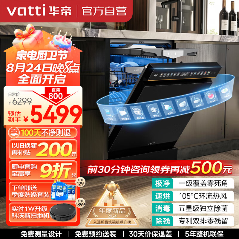 华帝(VATTI)16+2套洗碗机嵌入式 1级覆盖全域洗 105℃热风独立烘干 家用变频节能 一级水效 双子星系列D3000价格:6299.00元!