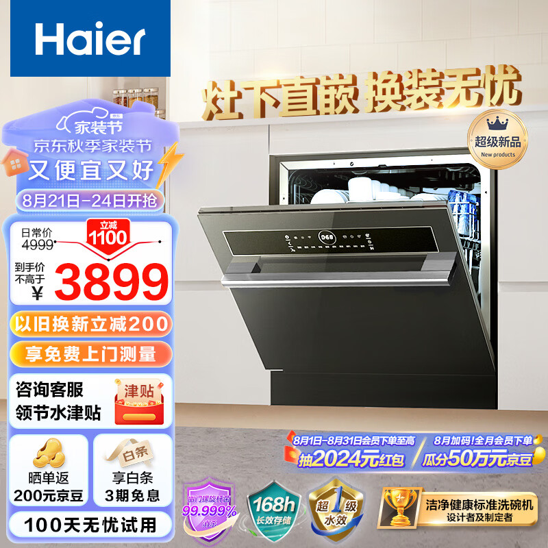 海尔(Haier)12套嵌入式壁嵌家用洗碗机焕新家Z10 洗消一体 高温除菌 一级水效 智能开门速干EBW12327YSU1价格:3899.00元!