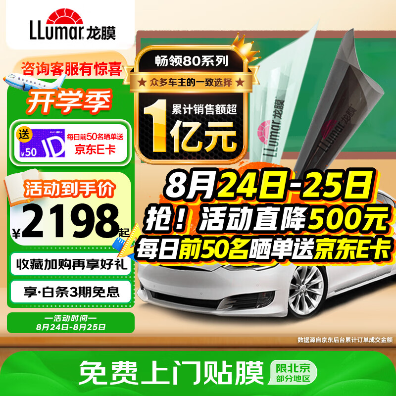 龙膜汽车贴膜汽车玻璃膜畅领80新能源陶瓷膜汽车膜隐私隔热膜防晒膜太阳膜车窗贴膜防爆膜价格:2698.00元!