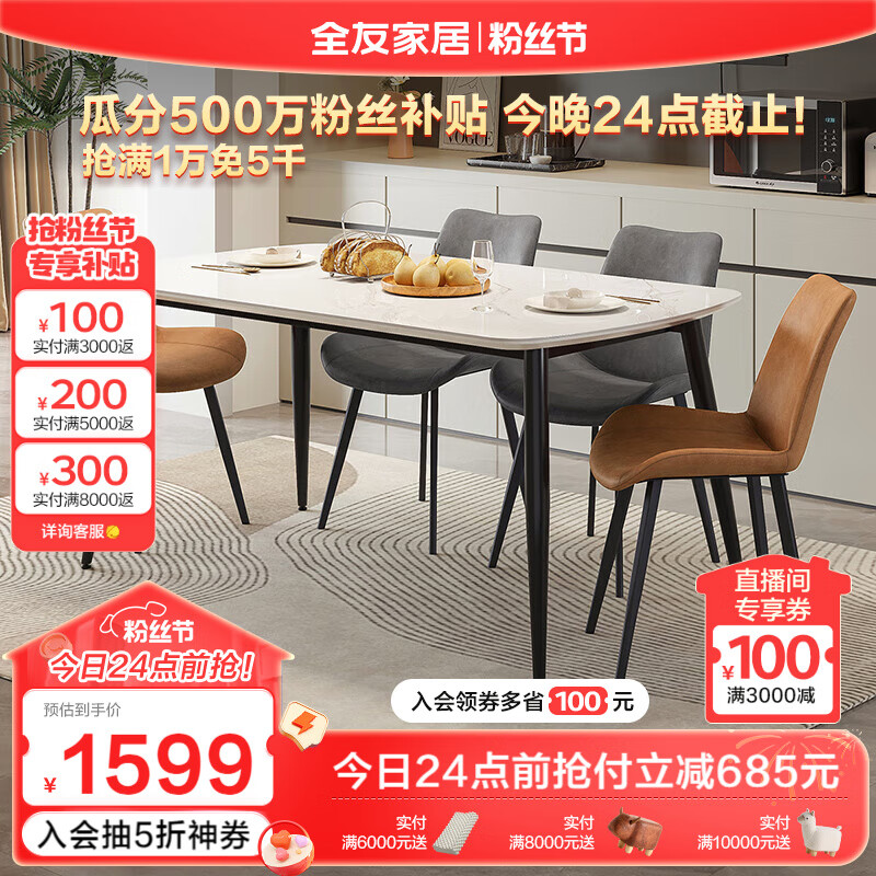 全友家居 岩板餐桌家用现代简约风餐桌餐椅组合吃饭长方形桌子DW1179价格:2284.29元!