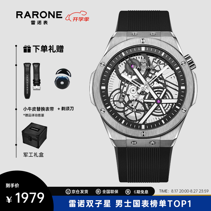 雷诺(RARONE)双子星·X时轮全景镂空机械表夜光国表品牌男士腕表送男友礼物价格:2189.00元!