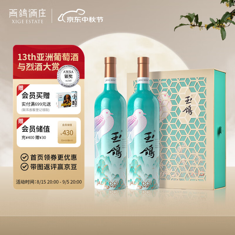 西鸽酒庄玉鸽国彩蓝国产干红葡萄酒750ml*2瓶礼盒装 宁夏贺兰山红酒送礼价格:308.00元!