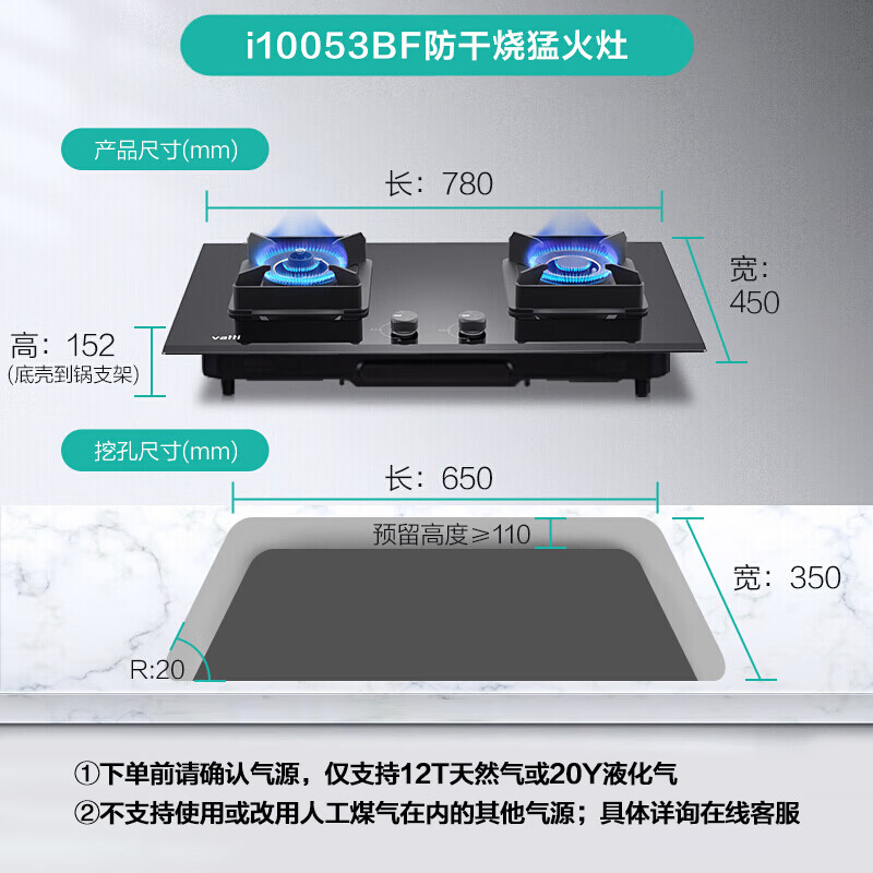 华帝(VATTI)燃气灶家用双灶台灶具 4.5kW高热效猛火玻璃面板嵌入式智能防干烧JZY-i10053BF(液化气)价格:1399.00元!