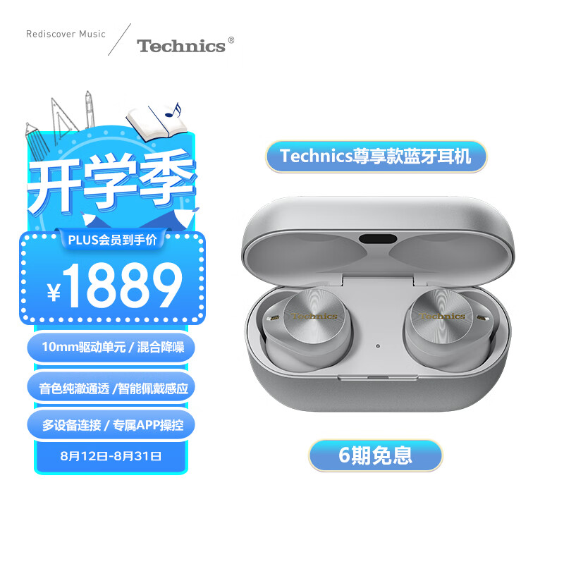 TechnicsEAH-AZ80 银色 尊享级 真无线入耳蓝牙立体声耳机 适用于苹果华为小米等智能手机 松下HiFi耳机价格:1898.49元!
