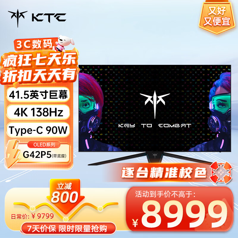 KTC41.5英寸OLED电脑显示器4K 138Hz 0.1ms 10bit 色准<2LGD原装电竞屏Type-C带音响kvm带底座G42P5价格:8999.00元!