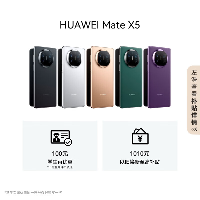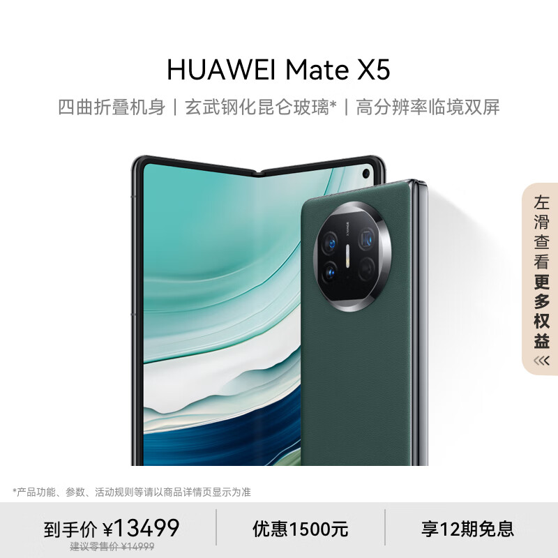 华为(HUAWEI) Mate X5 折叠屏手机 16GB+512GB 青山黛价格:13499.00元!