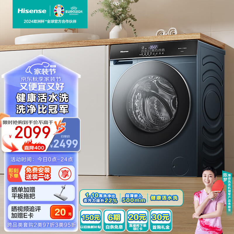 海信(Hisense)滚筒洗衣机全自动 10公斤洗烘一体 新品 超薄智能双投放 1.10高洗净比 活水洗2.0 HD10SE5价格:2099.00元!