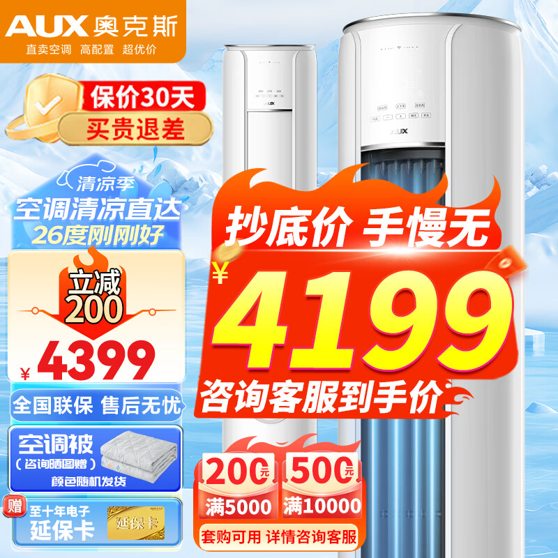 奥克斯(AUX)空调柜机 2匹立式 一级能效 大出风口家用立式空调冷暖自清洁KFR-51LW/BPR3ZAQK(B1)[家电]价格:3999.00元!