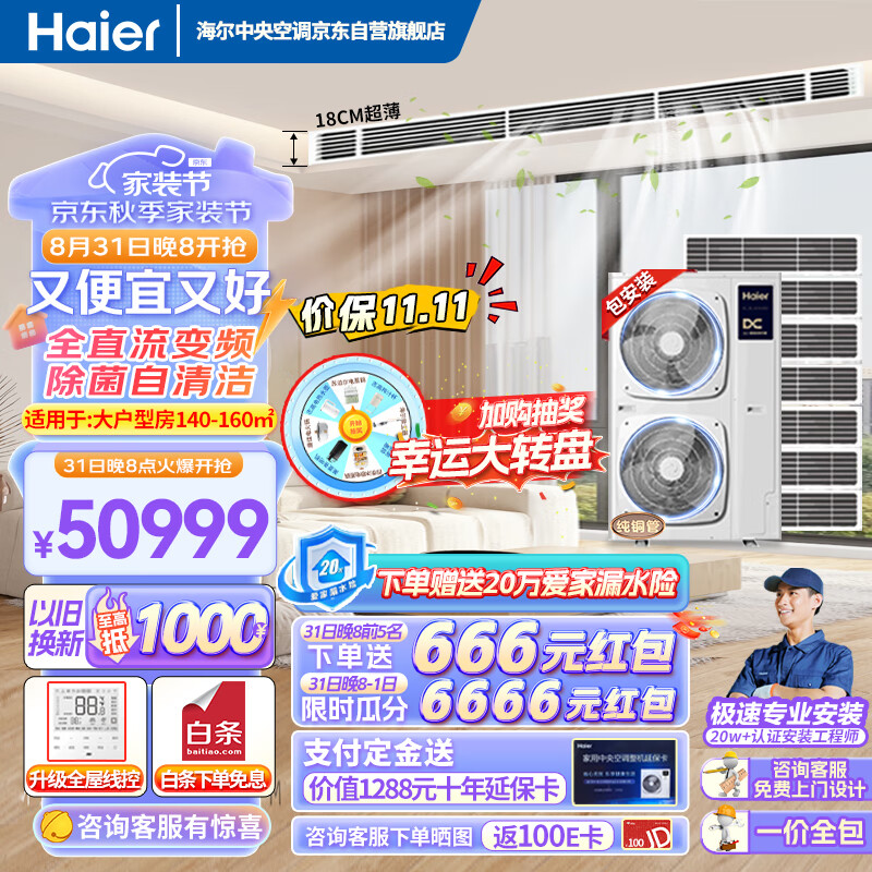 海尔(Haier)中央空调一拖七风管机9匹小多联新一级能效全直流变频嵌入式铭家RFC226MXSAYD(G)价格:50968.00元!