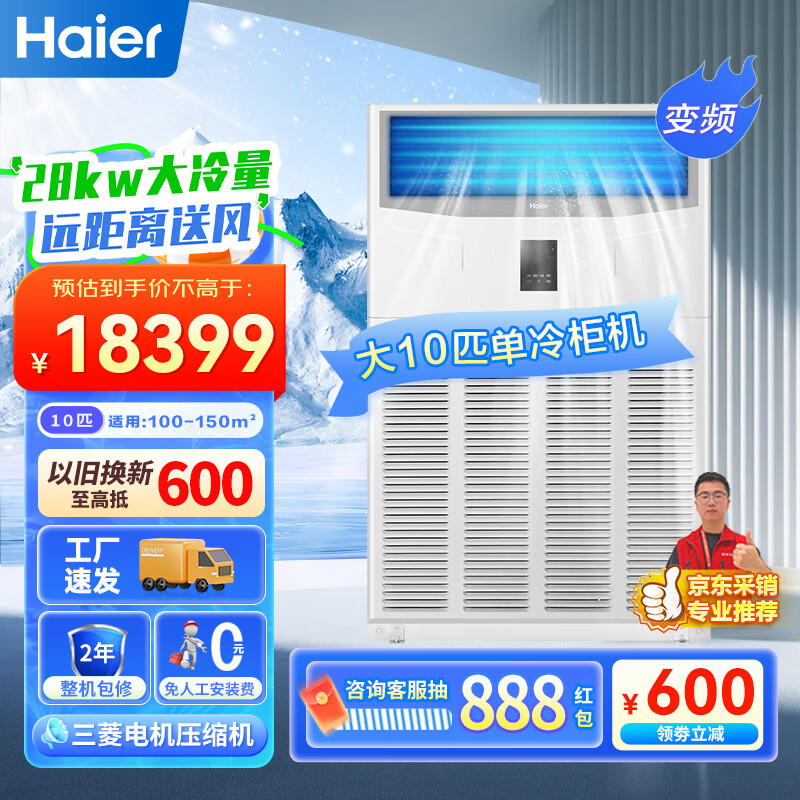 海尔(Haier)10匹单冷柜式空调中央空调柜机商用直流变频2级能效三菱压机380V LFLC280DXSAYC(G)免人工安装费价格:18999.00元!