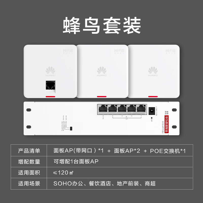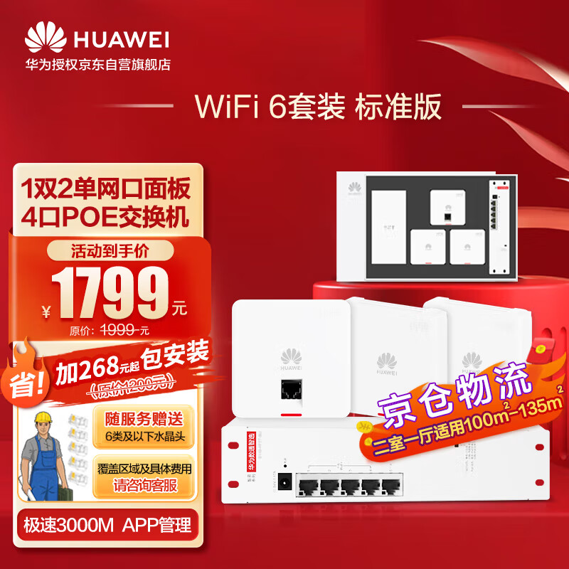 华为全屋wifi6套装标准版 3个双频千兆86无线ap面板+4口POE交换机 5g分布式路由器穿墙王企业级家用组网覆盖价格:1799.00元!