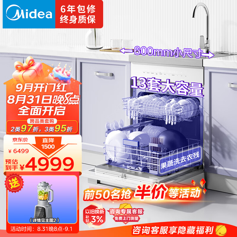 美的(Midea)集成水槽洗碗机TX60 一体式 大单槽 白色水槽洗碗机一体 洗碗机带洗菜盆一体机小尺寸价格:4999.00元!