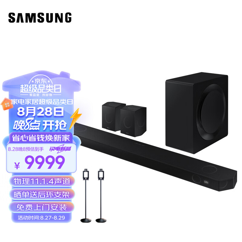三星Q990D杜比全景声11.1.4声道 条形音箱无线环绕低音炮 投影仪电视游戏音响 回音壁家庭影院HDMI2.1价格:9999.00元!