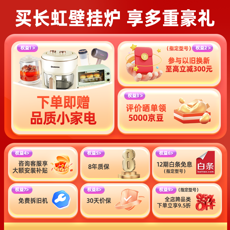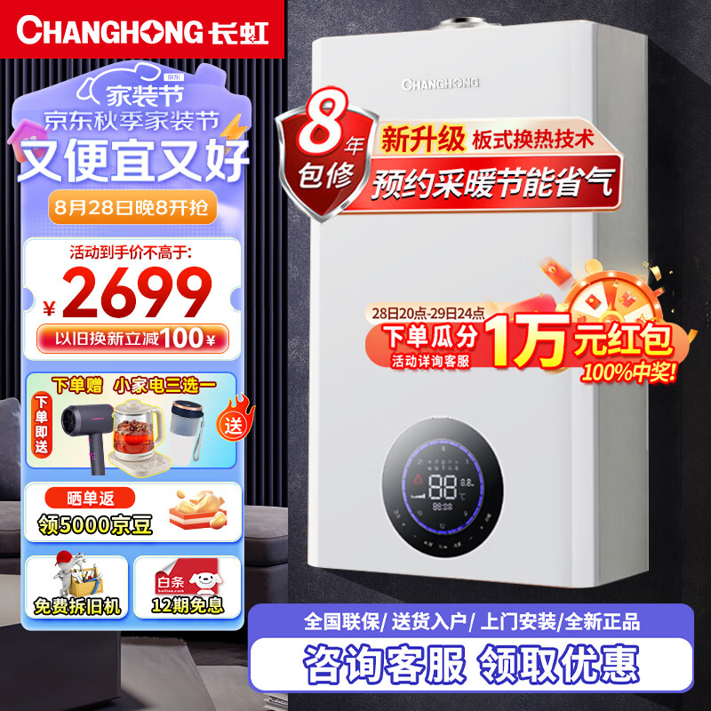 长虹(CHANGHONG)燃气壁挂炉天然气壁挂式供暖锅炉暖气片地暖采暖热水两用板换式燃气壁挂炉热水器洗澡以旧换新20C2价格:2999.00元!