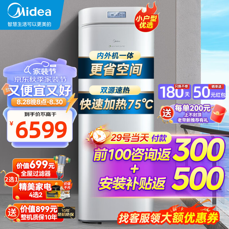 美的( Midea) 空气能热水器一体机WIFI智控双源速热75°高温150升包安装家用 RSJ-18/150RDN3-E2价格:6599.00元!