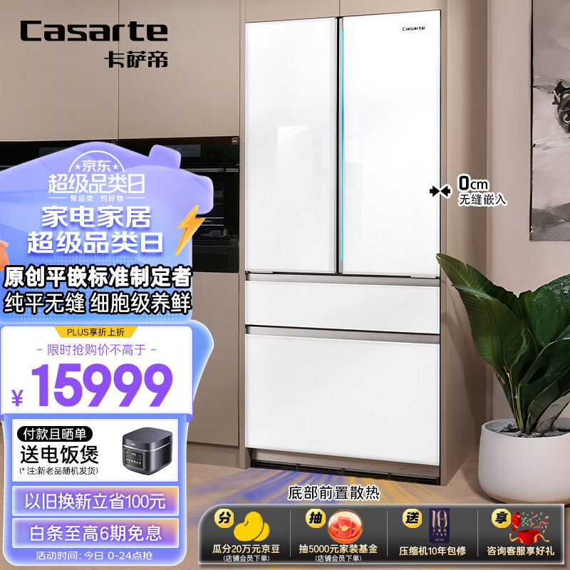 卡萨帝(Casarte)505升原石系列原创平嵌法式四开门嵌入式白色家用大容量一级能效超薄电冰箱BCD-505WGCFDM4WKU1价格:15999.00元!