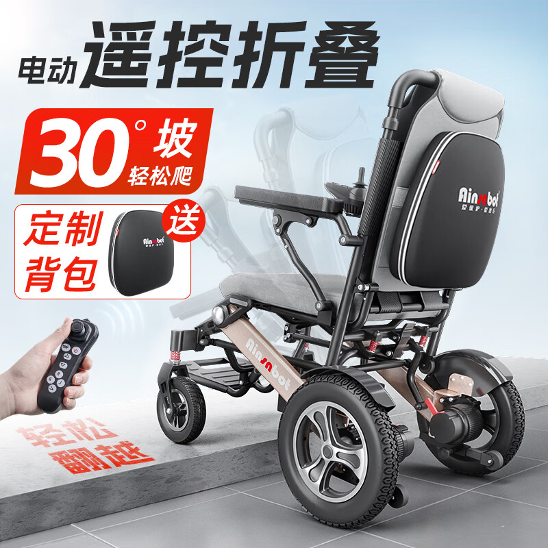 Ainsnbot 电动轮椅车智能遥控全自动老年人残疾人家用出行轻便可折叠旅行老人专用越野轮轮椅车双人十大排名价格:5780.00元!