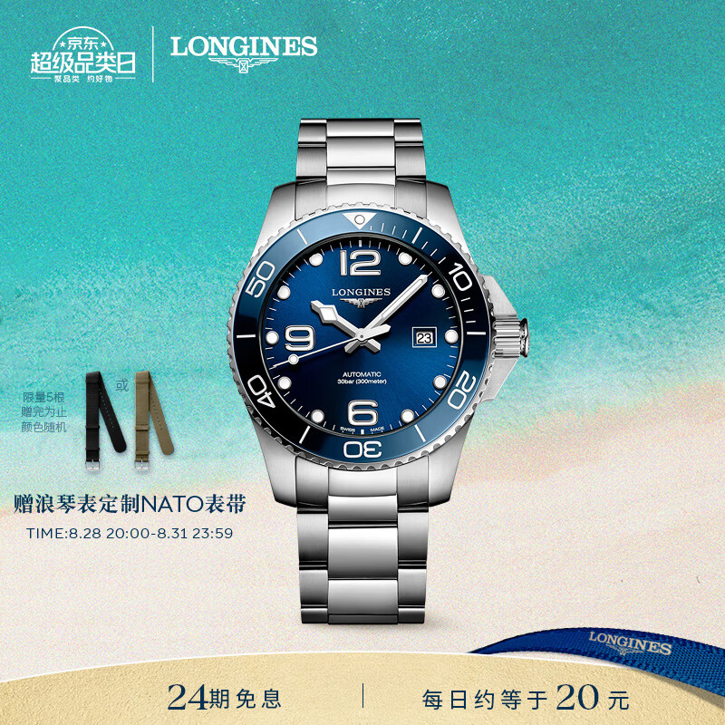 浪琴(LONGINES)彭于晏推荐 瑞士手表 康卡斯潜水系列 机械钢带男表L37824966价格:14600.00元!