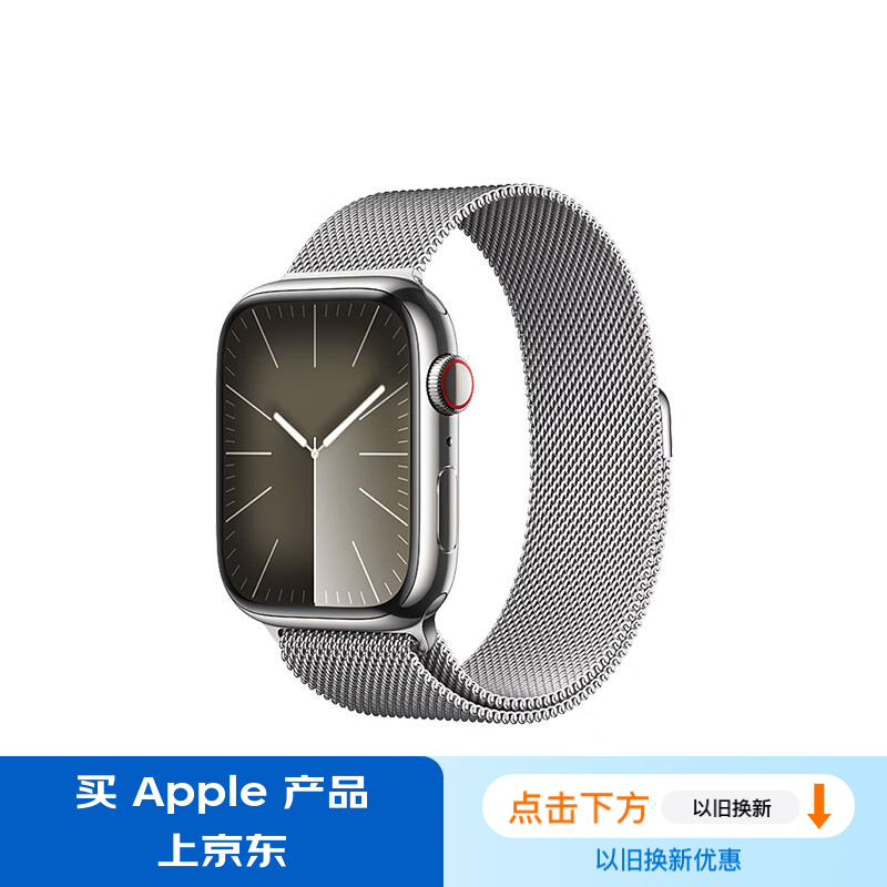 Apple/苹果 Watch Series 9 智能手表GPS+蜂窝款45毫米银色不锈钢表壳银色米兰尼斯表带 MRPJ3CH/A价格:6599.00元!